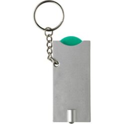 Brelok do kluczy, żeton do wózka na zakupy, lampka LED z nadrukiem Twojego logo, materiał: metal, ps, kolor: jasnozielony