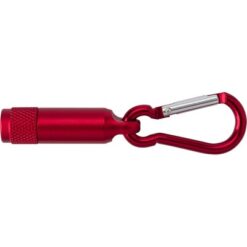 Brelok karabińczyk, lampka LED z nadrukiem Twojego logo, materiał: metal, plastik, aluminium, kolor: czerwony