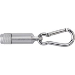 Brelok karabińczyk, lampka LED z nadrukiem Twojego logo, materiał: metal, plastik, aluminium, kolor: srebrny