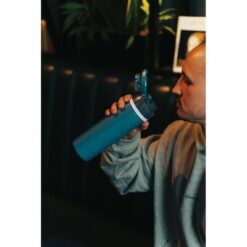 Butelka sportowa 700 ml, posiada wbudowaną słomkę, produkt wykonany ze stali pochodzącej z recyklingu z certyfikatem RCS, zapakowana w pudełko upominkowe FSC