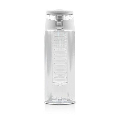 Butelka sportowa 700 ml Air Gifts, posiada pojemnik na lód lub owoce umożliwiający nadanie wodzie smaku według własnych preferencji, kolorowa zakrętka ze składanym uchwytem ułatwiającym noszenie, butelka przeznaczona wyłącznie do zimnych i niegazowanych napojów, produkt wykonany z plastiku