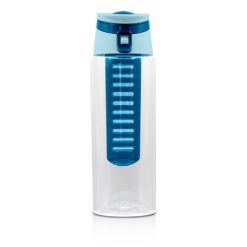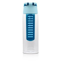 Butelka sportowa 700 ml Air Gifts, posiada pojemnik na lód lub owoce umożliwiający nadanie wodzie smaku według własnych preferencji, kolorowa zakrętka ze składanym uchwytem ułatwiającym noszenie, butelka przeznaczona wyłącznie do zimnych i niegazowanych napojów, produkt wykonany z plastiku