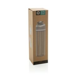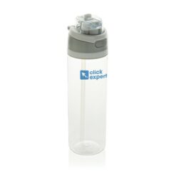Butelka sportowa 800 ml, posiada słomkę i szeroki otwór do picia, wieczko z blokadą, uchwyt, wykonana z RPET, całkowita zawartość materiałów z recyklingu obliczona na podstawie wagi całkowitej produktu: 47%
