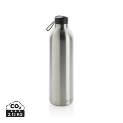 Butelka termiczna 1000 ml, wykonana ze stali nierdzewnej pochodzącej z recyklingu, całkowita zawartość materiałów z recyklingu obliczona na podstawie wagi całkowitej przedmiotu: 97%, podwójne ścianki z próżnią pomiędzy, pasuje do większości uchwytów samochodowych, w pudełku z papieru kraftowego z certyfikatem FSC®, pudełko można wykorzystać jako stojak na telefon lub doniczkę, utrzymuje temperaturę napojów gorących do 20 godzin oraz zimnych do 20 godzin