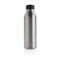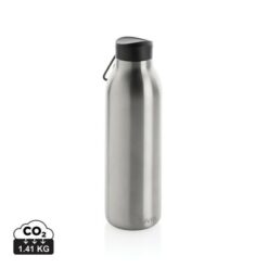 Butelka termiczna 500 ml, podwójne ścianki ze stali nierdzewnej z recyklingu z próżnią pomiędzy, zawartość materiałów z recyklingu obliczona na podstawie wagi całkowitej przedmiotu: 97%, utrzymuje temperaturę napojów ciepłych do 10 godzin oraz zimnych do 20 godzin, pasuje do większości uchwytów samochodowych, w pudełku z certyfikatem FSC®, klasa termiczna: A, ślad węglowy produktu: 1,35 kg CO2