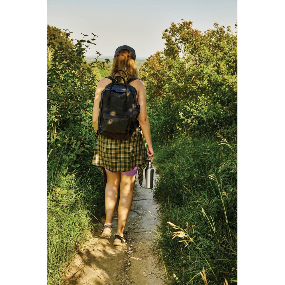Butelka termiczna 500 ml z uchwytem, wykonana ze stali nierdzewnej, podwójne ścianki z próżnią pomiędzy, utrzymuje temperaturę napojów ciepłych do 12 godzin i zimnych do 24 godzin, wyłącznie mycie ręczne