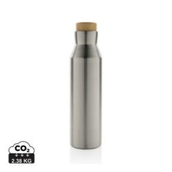 Butelka termiczna 500 ml, podwójne ścianki z próżnią pomiędzy, utrzymuje temperaturę napojów ciepłych do 5 godzin oraz zimnych do 15 godzin, wykonana ze stali nierdzewnej z recyklingu z certyfikatem RSC (Recycled Claim Standard) który gwarantuje, że wykorzystane materiały pochodzą z recyklingu, całkowita zawartość materiału z recyklingu obliczona w oparciu o wagę całkowitą przedmiotu: 88%, ślad węglowy produktu: 2,38 kg CO2