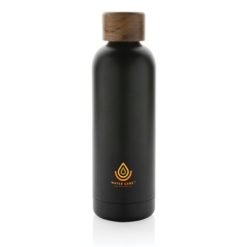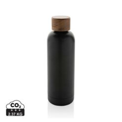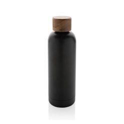Butelka termiczna 500 ml Wood, stal nierdzewna z recyklingu z nadrukiem Twojego logo, materiał: pp, stal nierdzewna, stal, kolor: czarny