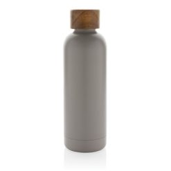Butelka termiczna 500 ml Wood, stal nierdzewna z recyklingu z nadrukiem Twojego logo, materiał: pp, stal nierdzewna, stal, kolor: szary