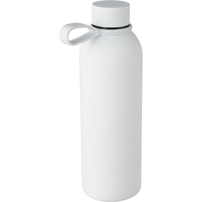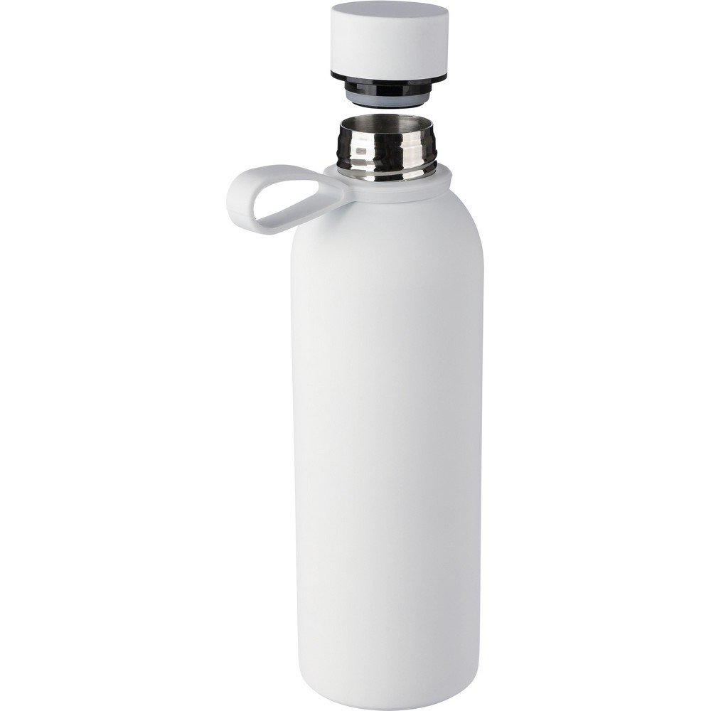 Butelka termiczna 500 ml ze stali nierdzewnej z nakrętką z PP, podwójne ścianki ze stali nierdzewnej z próżnią między ściankami dzięki czemu zachowuje funkcje termosu i długo utrzymuje temperaturę nie oddając jej na zewnątrz, zewnętrzna część wykonana jest ze stali nierdzewnej 201, a wewnętrzna ścianka ze stali nierdzewnej 304, pętla ułatwiająca noszenie, gumowe wykończenie, ikona recyklingu na produkcie, zapakowana w brązowe kartonowe pudełko