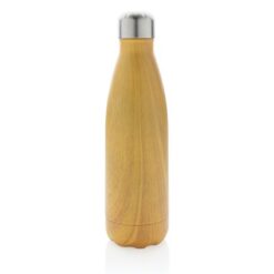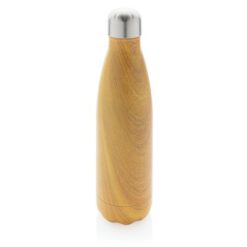 Butelka termiczna 500 ml z nadrukiem drewna, podwójne ścianki ze stali nierdzewnej z próżnią pomiędzy, utrzymuje temperaturę napojów gorących do 20 godzin oraz zimnych do 15 godzin