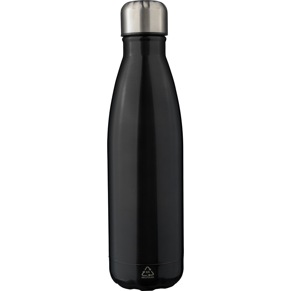 Butelka termiczna 500 ml, posiada podwójne ścianki ze stali nierdzewnej z recyklingu z próżnią między ściankami, co spowalnia oddawanie temperatury na zewnątrz, zachowując funkcje termosu, ikona stali nierdzewnej z recyklingu na produkcie, zapakowana w brązowy kartonik, utrzymuje temperaturę napojów gorących do 20 godzin +leakproof