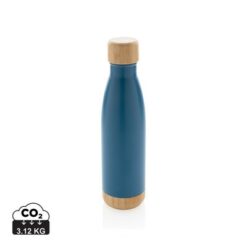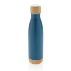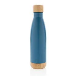 Butelka termiczna 510 ml, bambusowy element z nadrukiem Twojego logo, materiał: bambus, stal nierdzewna, stal, kolor: niebieski