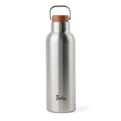 Butelka termiczna 800 ml, podwójne ścianki ze stali nierdzewnej z próżnią pomiędzy, wykonana ze stali nierdzewnej z recyklingu z certyfikatem RCS, drewniane wieczko z uchwytem, całkowita zawartość materiałów z recyklingu obliczona na podstawie wagi całkowitej przedmiotu: 79%, wyłącznie mycie ręczne, w pudełku z papieru kraftowego z certyfikatem FSC®