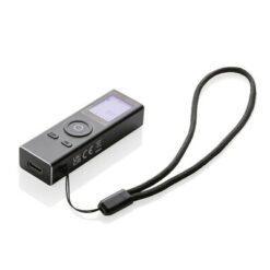 Dalmierz laserowy, zasięg pomiaru do 30 m, wykonany z aluminium z recyklingu, całkowita zawartość materiałów z recyklingu obliczona na podstawie wagi całkowitej przedmiotu: 22%, wbudowana bateria o pojemności 250 mAh, ładowanie przez USB, laser klasy 2, mierzy odległość, powierzchnię, objętość oraz przekątne, wejście USB typu C, ślad węglowy produktu: 0,63 kg CO2