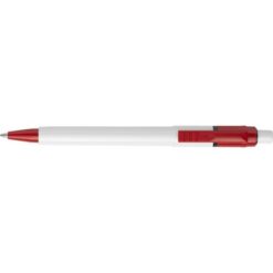 Długopis ABS Stilolinea Baron, biała końcówka i kolorowy klips, wkład w niebieskim kolorze, zawiera tusz German Dokumental Ink, produkt wykonany z ABS i plastiku