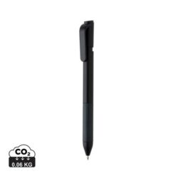 Długopis przekręcany, wykonany z ABS z recyklingu z certyfikatem GRS, całkowita zawartość materiałów z recyklingu obliczona na podstawie wagi całkowitej przedmiotu: 67%, niemiecki wkład Dokumental® w kolorze niebieskim w komplecie, długość pisania ok. 1200 m, kulka TC zapewnia wygodne pisanie, ślad węglowy produktu: 0,06 kg CO2