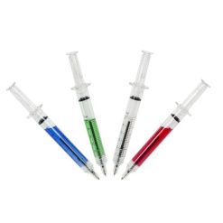 Długopis „strzykawka” z kolorowym płynem, posiada nadrukowaną skalę ml, wkład w niebieskim kolorze, produkt wykonany z AS