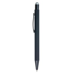 Długopis, touch pen z gumowanym wykończeniem, grawer ukazuje powierzchnię w kolorze zbliżonym do koloru gumowej końcówki lub w kolorze białym