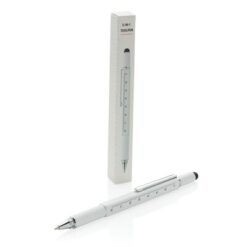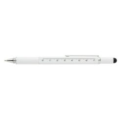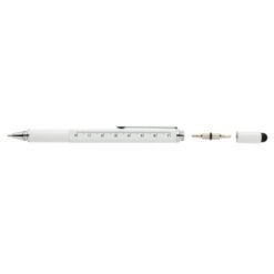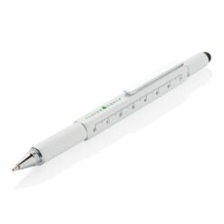 Długopis wielofunkcyjny 5 w 1, linijka 7 cm, poziomica, śrubokręt, touch pen, wykonany z wysokiej jakości mosiądzu, aluminiowy klip, długość pisania do 400 m, ślad węglowy produktu: 0,21 kg CO2