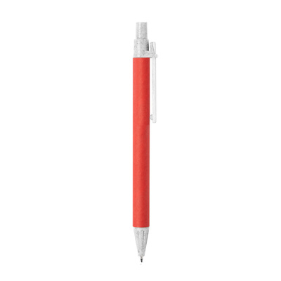 Długopis z kartonu z recyklingu, elementy ze słomy pszenicznej z nadrukiem Twojego logo, materiał: plastik, karton, słoma pszeniczna, kolor: czerwony