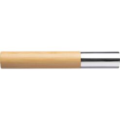 Długopis przekręcany z bambusowym trzonem, posiada niebieski wkład, bambusowa tuba chroniąca przed zniszczeniem w komplecie, produkt wykonany ze stali nierdzewnej