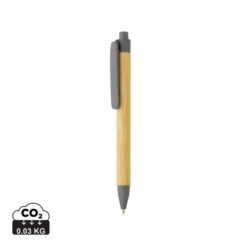 Długopis, wykonany z papieru z recyklingu, bambusowy wzór na trzonie, klip ze słomy pszenicznej, niemiecki wkład Dokumental® w kolorze niebieskim w komplecie, długość pisania ok. 1000 m, kulka TC zapewnia wygodne pisanie, ślad węglowy produktu: 0,03 kg CO2