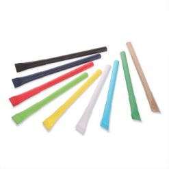 Długopis z dopasowaną kolorystycznie zatyczką, trzon z ciętym zakończeniem, wkład w niebieskim kolorze, produkt wykonany ze zrolowanego papieru