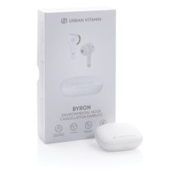 Douszne słuchawki bezprzewodowe Urban Vitamin Byron z nadrukiem Twojego logo, materiał: plastik, kolor: biały