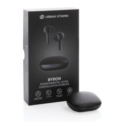 Douszne słuchawki bezprzewodowe Urban Vitamin Byron z nadrukiem Twojego logo, materiał: plastik, kolor: czarny