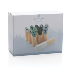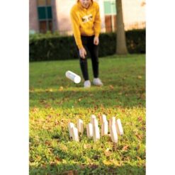 Drewniana gra taktyczna, celem gry jest rzut w 12 drewnianych kołków w taki sposób aby zdobyć dokładnie 50 punktów, po każdym rzucie kołki ustawiane są do pionu, zestaw zawiera 12 kołków oraz kij do rzucania, wykonane z drewna sosnowego, bawełniany pokrowiec oraz instrukcja z zasadami gry w komplecie, ślad węglowy produktu: 3,15 kg CO2