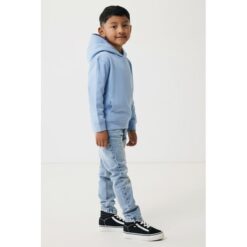 Dziecięca bluza z kapturem i kieszeniami Iqoniq Yengo z bawełny z recyklingu z nadrukiem Twojego logo, materiał: bawełna, kolor: niebieski