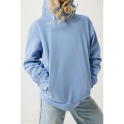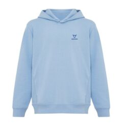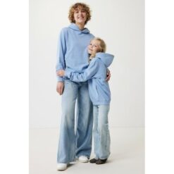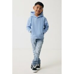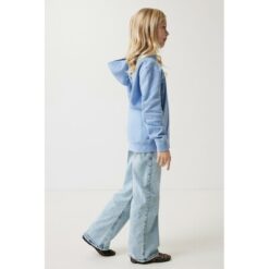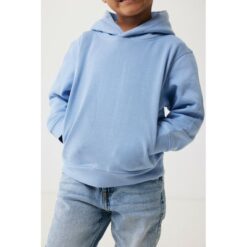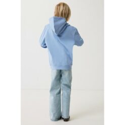 Dziecięca bluza z kapturem i kieszeniami Iqoniq Yengo z bawełny z recyklingu z nadrukiem Twojego logo, materiał: bawełna, kolor: niebieski