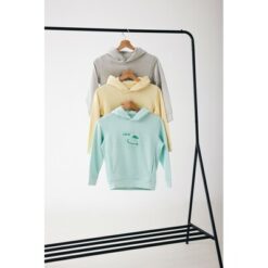 Dziecięca bluza z kapturem i kieszeniami Iqoniq Yengo z bawełny z recyklingu z nadrukiem Twojego logo, materiał: bawełna, kolor: zielony
