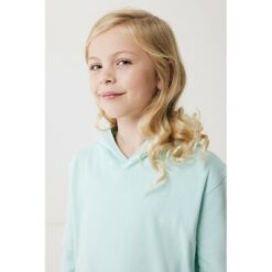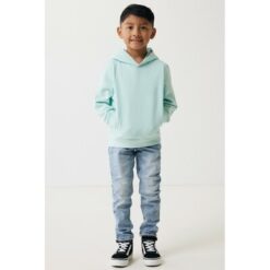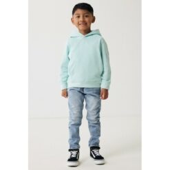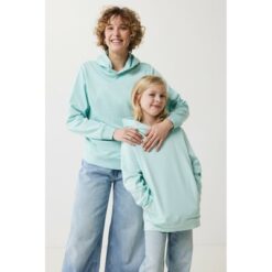 Dziecięca bluza z kapturem i kieszeniami Iqoniq Yengo z bawełny z recyklingu z nadrukiem Twojego logo, materiał: bawełna, kolor: zielony