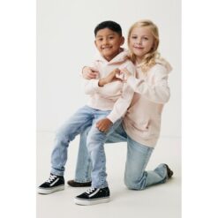 Dziecięca bluza z kapturem i kieszeniami Iqoniq Yengo z bawełny z recyklingu z nadrukiem Twojego logo, materiał: bawełna, kolor: różowy
