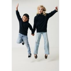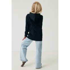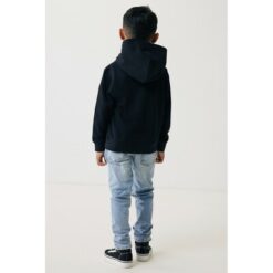 Dziecięca bluza z kapturem i kieszeniami Iqoniq Yengo z bawełny z recyklingu z nadrukiem Twojego logo, materiał: bawełna, kolor: czarny