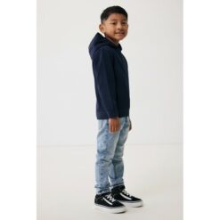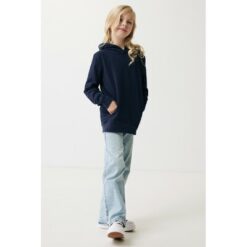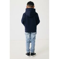 Dziecięca bluza z kapturem i kieszeniami Iqoniq Yengo z bawełny z recyklingu z nadrukiem Twojego logo, materiał: bawełna, kolor: niebieski