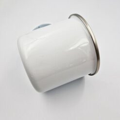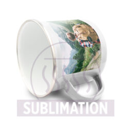 Emaliowany kubek 360 ml pod sublimację, drobne niedoskonałości nawiązują do ręcznie wykonywanych kubków