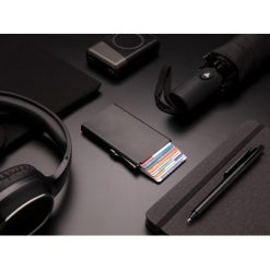 Etui na karty kredytowe, ochrona RFID z nadrukiem Twojego logo, materiał: plastik, aluminium, kolor: czarny