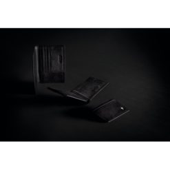 Etui na karty kredytowe z ochroną RFID, wykonane z wysokiej jakości skóry PU, 3 przegrody mieszczące do 8 kart kredytowych, wewnątrz oddzielna przegroda na banknoty i monety, ślad węglowy produktu: 0,2 kg CO2