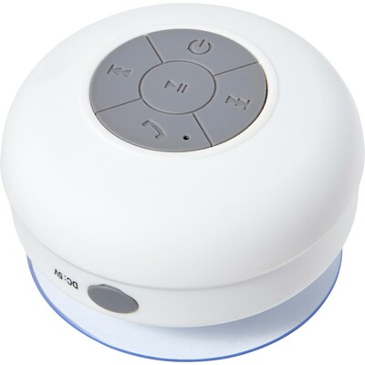 Głośnik bezprzewodowy 2W z przyssawką z nadrukiem Twojego logo, materiał: plastik, kolor: biały