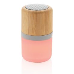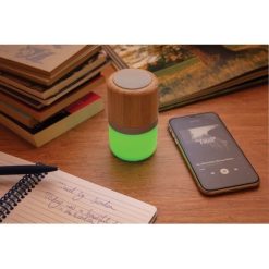 Głośnik bezprzewodowy 3W, BT 5.0, lampka, 4 tryby oświetlenia, wykonany z naturalnego bambusa, w pełni naładowany akumulator o pojemności 400 mAh umożliwia odtwarzanie muzyki do 3 godzin w zależności od używania, ponowne naładowanie w 2 godziny, kabel micro USB bez dodatku PVC w komplecie, ślad węglowy produktu: 3,04 kg CO2