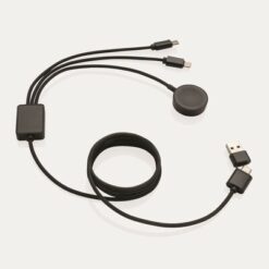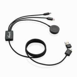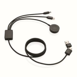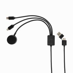 Kabel do ładowania 6 w 1 Terra, bezprzewodowa ładowarka do zegarka, wykonany z recyklingowanego aluminium, PET, ABS i TPE z certyfikatem RCS, podwójne wejście: USB-A i USB-C, podwójne wyjście: Lightning i USB-C, ładowarka 2,5W do zegarków (Apple Watch, Samsung Watch), pleciony kabel z PET o długości 120 cm, obsługuje ładowanie do 5V/2A, opakowanie FSC® mix