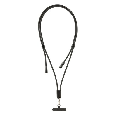 Kabel do ładowania, smycz do telefonu LoopAmp z nadrukiem Twojego logo, materiał: rpet, kolor: czarny