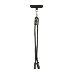 Kabel do ładowania, uchwyt do telefonu LoopAmp z nadrukiem Twojego logo, materiał: rpet, kolor: czarny