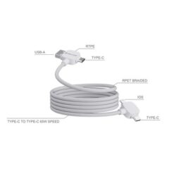 Kabel do ładowania i synchronizacji Urban Vitamin Stockton 65W z nadrukiem Twojego logo, materiał: rpet, tpe, kolor: biały