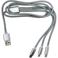Kabel do ładowania z nadrukiem Twojego logo, materiał: aluminium, nylon, kolor: srebrny