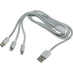 Kabel do ładowania z 4 końcówkami: USB, typu C, micro USB oraz kompatybilną z urządzeniami iOS, co umożliwia jednoczesne ładowanie kilku urządzeń o różnych złączach