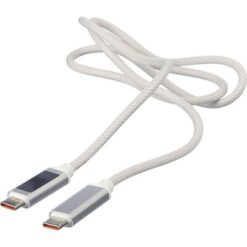 Kabel do ładowania i przesyłania danych 65W, o długości 1 metra, USB-C na USB-C, niebieska kontrolka prędkości ładowania na gnieździe, zmieści się w kieszeni, produkt wykonany z tkaniny nylonowej i aluminium